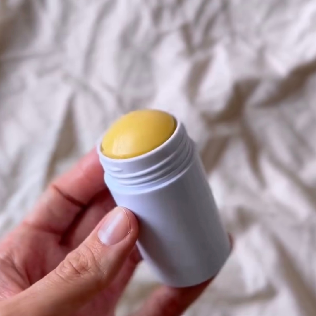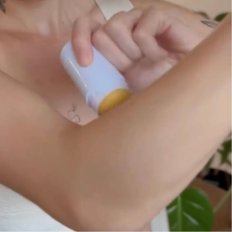 O seu aroma natural e suave é proveniente do Óleo Essencial de Gerânio. A sua embalagem em stick bastão de 30g dura de 1 a 2 meses aplicando todos os dias. Para utilizar, basta aplicar no interior de coxas, antebraços, barriga, de 1 a 2 vezes ao dia.