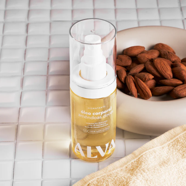 O Óleo Corporal Hidratante Amêndoas Doces da Alva promove toque seco e hidratação intensa que a sua pele merece.