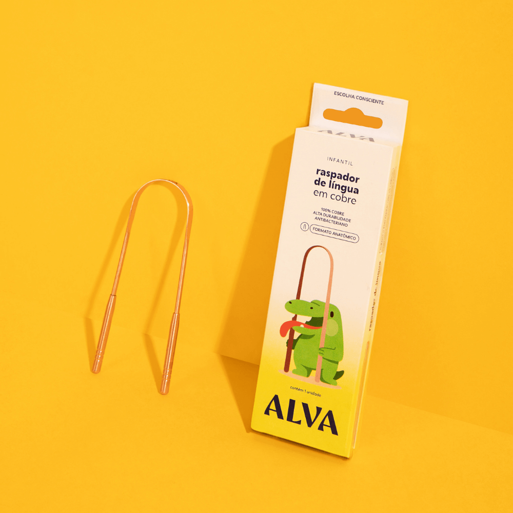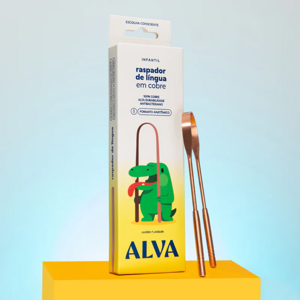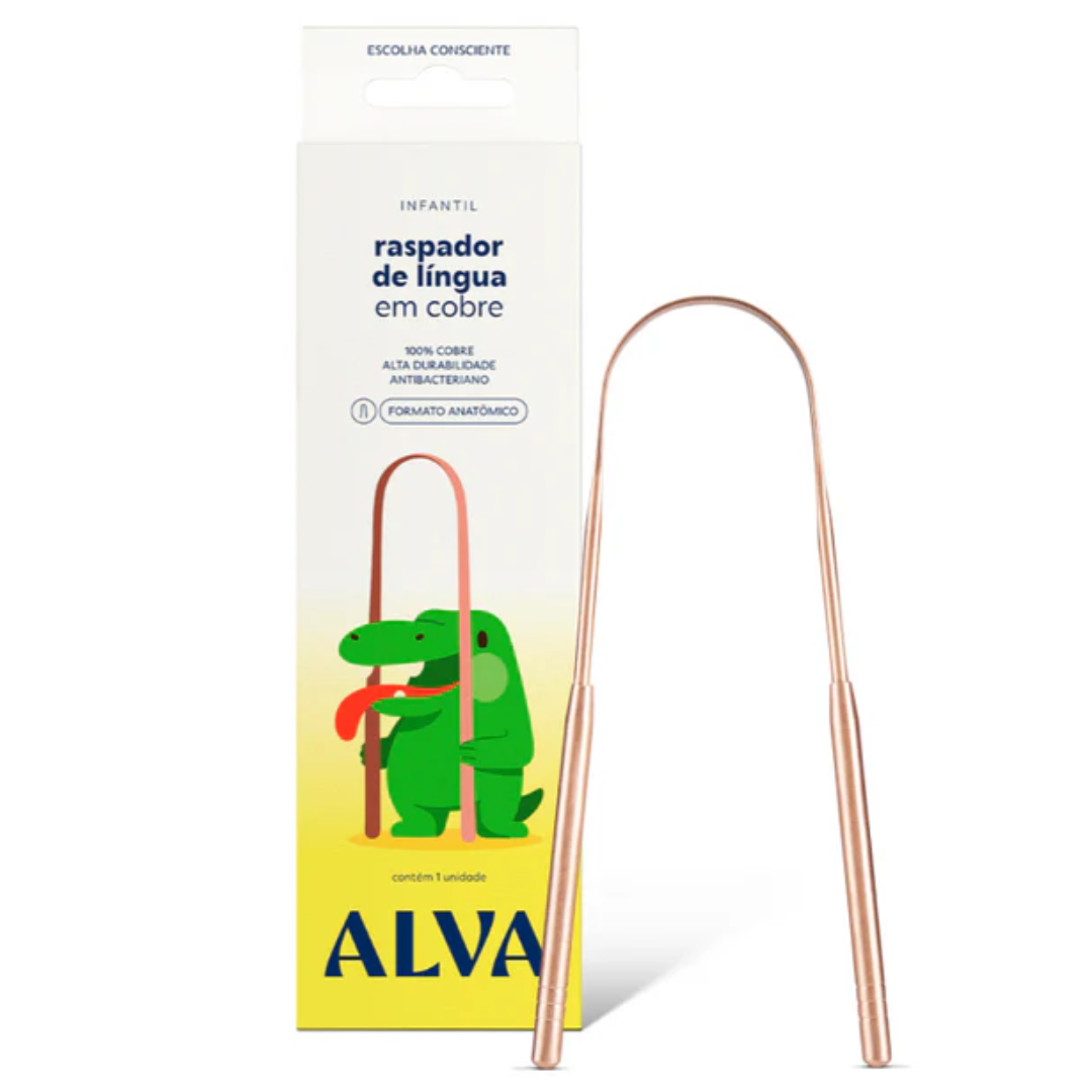 O Raspador de Língua de Cobre Infantil da Alva foi projetado para auxiliar na higiene bucal das crianças. O seu formato anatômico permite a higienização sem machucar, removendo a saburra lingual, e proporcionando uma limpeza mais adequada, hálito fresco e prevenindo cáries.